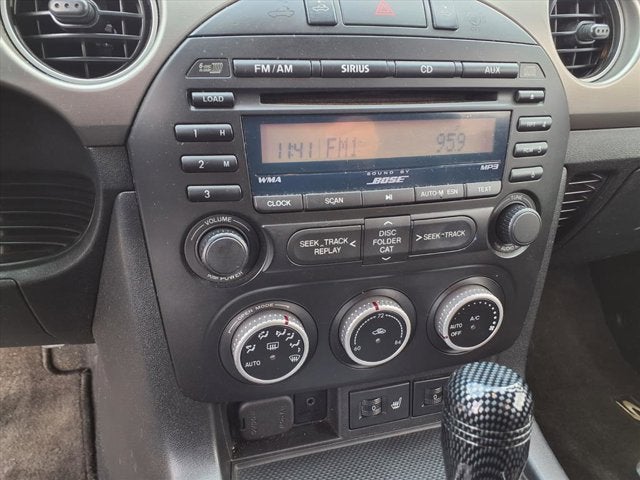 Premium Package (Anti-Theft Alarm, Bluetooth® Hands-Free Phone System, Dynamic Stability Control w/Traction Control, Mazda Advanced Keyless Entry System, and Xenon Headlights), Black Leather, 17 Aluminum Alloy Wheels, 4-Wheel Disc Brakes, 7 Speakers, ABS brakes, Air Conditioning, Alloy wheels, AM/FM radio, AM/FM Stereo w/In-Dash 6 Disc CD Changer, Auto-dimming Rear-View mirror, Automatic temperature control, Bumpers: body-color, Cargo Net, CD player, Convertible roof wind blocker, Driver door bin, Driver vanity mirror, Dual front impact airbags, Dual front side impact airbags, Four wheel independent suspension, Front anti-roll bar, Front Bucket Seats, Front Center Armrest, Front fog lights, Garage door transmitter: HomeLink(R), Glass rear window, Heated front seats, Leather Shift Knob, Leather Upholstery, Low tire pressure warning, Occupant sensing airbag, Outside temperature display, Panic alarm, Passenger cancellable airbag, Passenger door bin, Passenger vanity mirror, Power door mirrors, Power steering, Power windows, Rear anti-roll bar, Rear window defroster, Reclining Front Heated Bucket Seats, Remote keyless entry, Speed control, Speed-sensing steering, Sport steering wheel, Steering wheel mounted audio controls, Tachometer, Tilt steering wheel, Trip computer, and Wheel Locks.