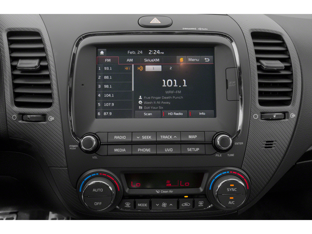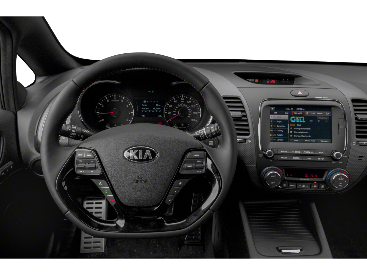 - LX POPULAR PACKAGE -inc: covered console w/dual 12v outlet and drive mode select Auto-On/Off Headlights Dual Illuminated Visor Vanity Mirrors Front Passenger Seat Back Map Pocket Overhead Map Light Illuminated Ignition & Glovebox Sunglass Holder Cruise Control steering wheel mounted controls Rear Center Armrest w/Cupholders Radio: UVO eServices Infotainment AM/FM/MP3 SiriusXM satellite radio Apple CarPlay and Android Auto smartphone integration USB/auxiliary input jacks 7" touch-screen display rearview camera 6 speakers including tweeter speakers Bluetooth® wireless technology w/voice recognition and steering-wheel-mounted audio controls Front Sliding Armrest (vs non-sliding on center console)