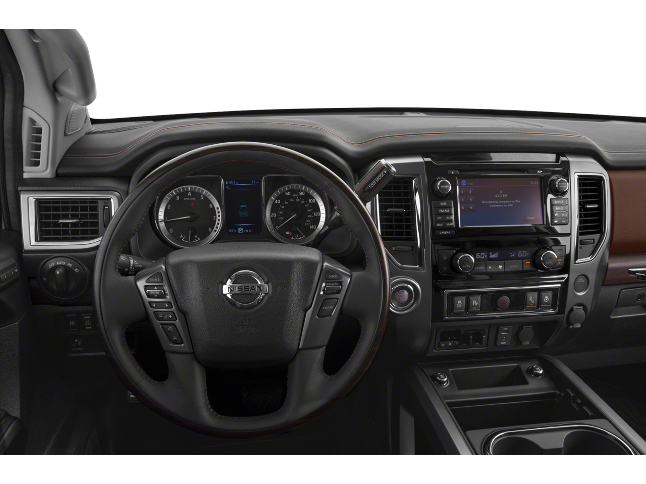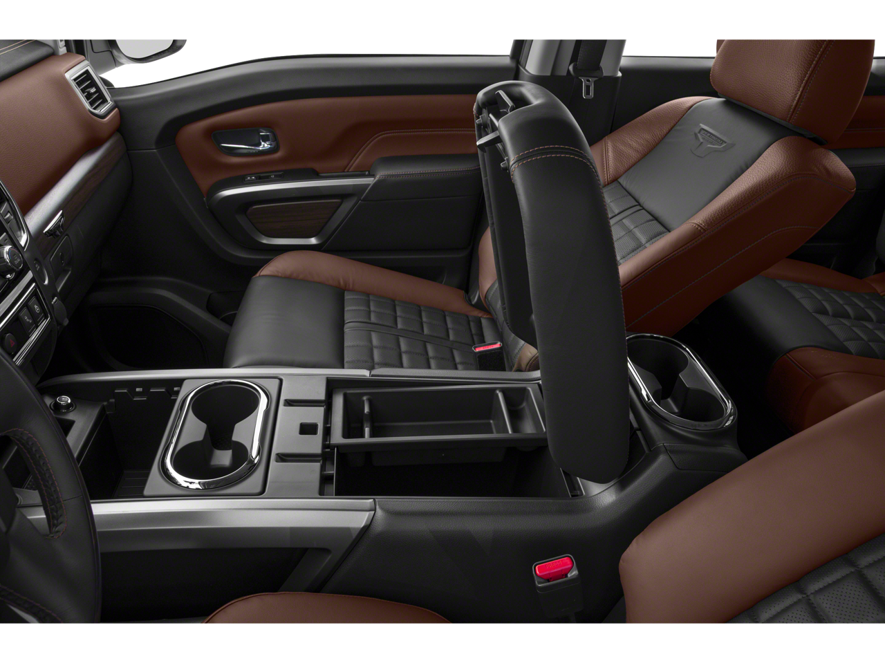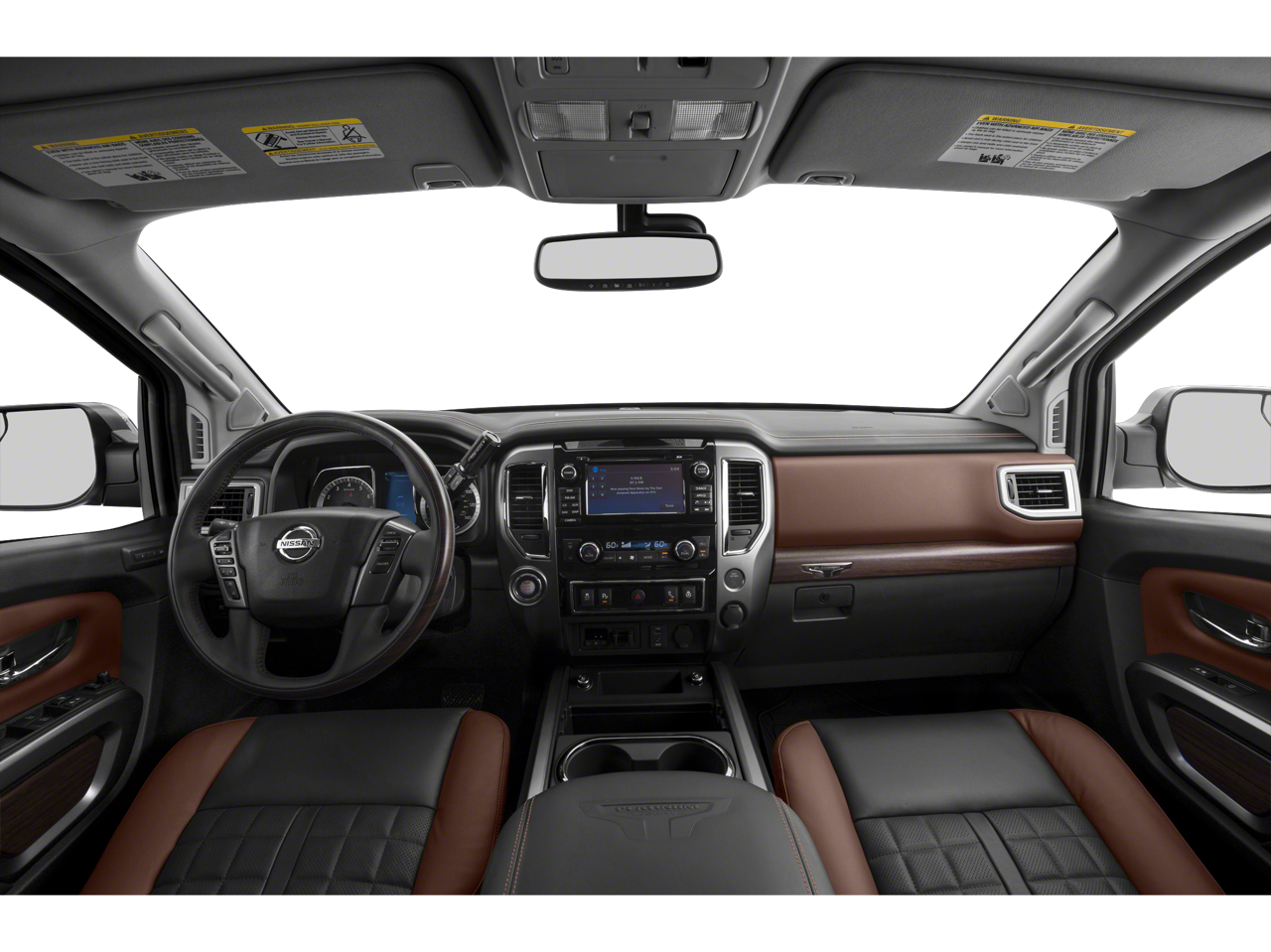 Platinum Reserve Utility Bed Package (5.5' TITAN Box and Rear Bumper Step (B13)), Platinum Utility Package (TITAN Box), 4WD, 12 Speakers, 2.937 Axle Ratio, 4-Wheel Disc Brakes, ABS brakes, Activation Disclaimer, Air Conditioning, Alloy wheels, AM/FM radio: SiriusXM, Auto tilt-away steering wheel, Auto-dimming door mirrors, Auto-dimming Rear-View mirror, Automatic temperature control, Blind Spot Warning, Brake assist, CD player, Chrome wheels, Compass, Delay-off headlights, Door Sill Kick Plates, Driver door bin, Driver vanity mirror, Dual front impact airbags, Dual front side impact airbags, Electronic Stability Control, Emergency communication system: NissanConnect Services, Floor Mats, Front anti-roll bar, Front Bucket Seats, Front Center Armrest, Front dual zone A/C, Front fog lights, Front reading lights, Front wheel independent suspension, Garage door transmitter: HomeLink, Heated & Cooled Front Captain's Chairs, Heated door mirrors, Heated front seats, Heated rear seats, Heated steering wheel, Illuminated entry, Illuminated running boards, Leather Shift Knob, Leather steering wheel, LED Fog Lights w/Dark Chrome Bezel, Low tire pressure warning, Memory seat, Navigation System, NissanConnect Services Powered By SiriusXM, Occupant sensing airbag, Outside temperature display, Overhead airbag, Overhead console, Panic alarm, Passenger door bin, Passenger vanity mirror, Power door mirrors, Power driver seat, Power passenger seat, Power steering, Power windows, Premium Leather Seat Trim, Radio data system, Radio: NissanConnect w/SiriusXM/Navi & Mobile Apps, Rain sensing wipers, Rear anti-roll bar, Rear seat center armrest, Rear step bumper, Rear window defroster, Remote keyless entry, Running Boards w/Dark Chrome, Security system, Speed control, Speed-sensing steering, Speed-Sensitive Wipers, Split folding rear seat, Steering wheel memory, Steering wheel mounted audio controls, Tachometer, Telescoping steering wheel, Tilt steering wheel, Traction control, Trip computer, Turn signal indicator mirrors, Variably intermittent wipers, Ventilated front seats, Voltmeter, and Wheels: 20 x 8 Dark Chrome Clad.