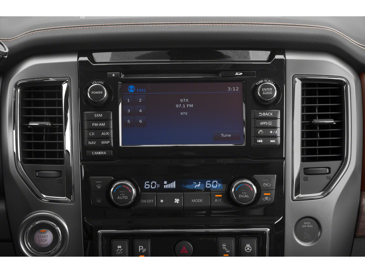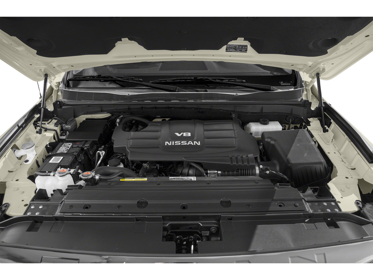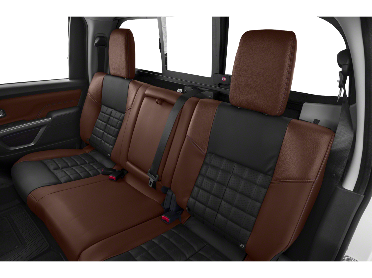 Platinum Reserve Utility Bed Package (5.5' TITAN Box and Rear Bumper Step (B13)), Platinum Utility Package (TITAN Box), 4WD, 12 Speakers, 2.937 Axle Ratio, 4-Wheel Disc Brakes, ABS brakes, Activation Disclaimer, Air Conditioning, Alloy wheels, AM/FM radio: SiriusXM, Auto tilt-away steering wheel, Auto-dimming door mirrors, Auto-dimming Rear-View mirror, Automatic temperature control, Blind Spot Warning, Brake assist, CD player, Chrome wheels, Compass, Delay-off headlights, Door Sill Kick Plates, Driver door bin, Driver vanity mirror, Dual front impact airbags, Dual front side impact airbags, Electronic Stability Control, Emergency communication system: NissanConnect Services, Floor Mats, Front anti-roll bar, Front Bucket Seats, Front Center Armrest, Front dual zone A/C, Front fog lights, Front reading lights, Front wheel independent suspension, Garage door transmitter: HomeLink, Heated & Cooled Front Captain's Chairs, Heated door mirrors, Heated front seats, Heated rear seats, Heated steering wheel, Illuminated entry, Illuminated running boards, Leather Shift Knob, Leather steering wheel, LED Fog Lights w/Dark Chrome Bezel, Low tire pressure warning, Memory seat, Navigation System, NissanConnect Services Powered By SiriusXM, Occupant sensing airbag, Outside temperature display, Overhead airbag, Overhead console, Panic alarm, Passenger door bin, Passenger vanity mirror, Power door mirrors, Power driver seat, Power passenger seat, Power steering, Power windows, Premium Leather Seat Trim, Radio data system, Radio: NissanConnect w/SiriusXM/Navi & Mobile Apps, Rain sensing wipers, Rear anti-roll bar, Rear seat center armrest, Rear step bumper, Rear window defroster, Remote keyless entry, Running Boards w/Dark Chrome, Security system, Speed control, Speed-sensing steering, Speed-Sensitive Wipers, Split folding rear seat, Steering wheel memory, Steering wheel mounted audio controls, Tachometer, Telescoping steering wheel, Tilt steering wheel, Traction control, Trip computer, Turn signal indicator mirrors, Variably intermittent wipers, Ventilated front seats, Voltmeter, and Wheels: 20 x 8 Dark Chrome Clad.
