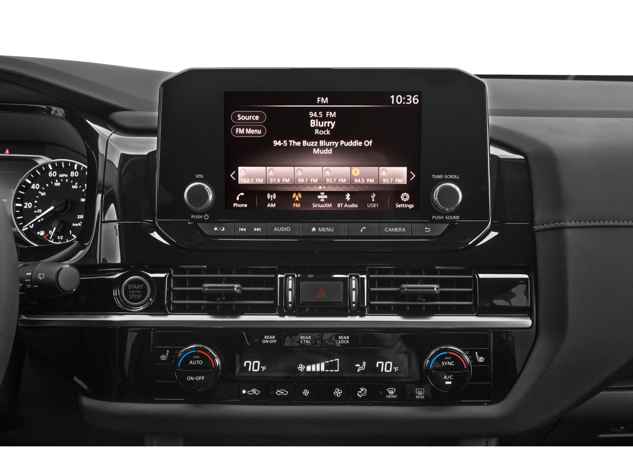 SV Black Package (Black Badging and Black Grille), 18 Painted Alloy Wheels, 3rd row seats: bench, 4-Wheel Disc Brakes, 6 Speakers, ABS brakes, Air Conditioning, Alloy wheels, AM/FM radio: SiriusXM, Auto High-beam Headlights, Automatic temperature control, Axle Ratio: TBD, Bench Seat Carpeted Floor Mats (Set of 4), Black Splash Guards (Set of 4), Brake assist, Bumpers: body-color, Cloth Seating Surfaces, Cross Bars, Delay-off headlights, Driver door bin, Driver vanity mirror, Dual front impact airbags, Dual front side impact airbags, Electronic Stability Control, Emergency communication system: NissanConnect Services, Four wheel independent suspension, Front anti-roll bar, Front Bucket Seats, Front Center Armrest, Front dual zone A/C, Front reading lights, Fully automatic headlights, Heated door mirrors, Heated Front Bucket Seats, Heated front seats, Illuminated entry, Knee airbag, Leather steering wheel, Low tire pressure warning, NissanConnect featuring Apple CarPlay and Android Auto, Occupant sensing airbag, Outside temperature display, Overhead airbag, Overhead console, Panic alarm, Passenger door bin, Passenger vanity mirror, Power door mirrors, Power driver seat, Power steering, Power windows, Radio data system, Radio: AM/FM Audio System w/NissanConnect, Rear air conditioning, Rear anti-roll bar, Rear Parking Sensors, Rear reading lights, Rear seat center armrest, Rear side impact airbag, Rear window defroster, Rear window wiper, Reclining 3rd row seat, Remote keyless entry, Security system, Speed control, Speed-sensing steering, Split folding rear seat, Spoiler, Steering wheel mounted audio controls, Tachometer, Telescoping steering wheel, Tilt steering wheel, Traction control, Trip computer, Turn signal indicator mirrors, and Variably intermittent wipers.