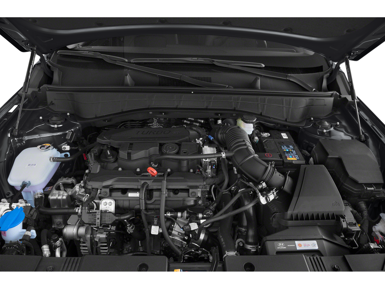 Option Group 01, 3.510 Axle Ratio, 4-Wheel Disc Brakes, 8 Speakers, ABS brakes, Air Conditioning, Alloy wheels, AM/FM radio: SiriusXM, Apple CarPlay & Android Auto, Auto High-beam Headlights, Auto-dimming Rear-View mirror, Automatic temperature control, Brake assist, Bumpers: body-color, Column-Mounted Shift-By-Wire, Delay-off headlights, Driver door bin, Driver vanity mirror, Dual front impact airbags, Dual front side impact airbags, Electronic Stability Control, Emergency communication system: Bluelink+, Front anti-roll bar, Front Bucket Seats, Front Center Armrest, Front dual zone A/C, Front reading lights, Front wheel independent suspension, Fully automatic headlights, Garage door transmitter: HomeLink, H-Tex Leatherette Seat Trim, Heated & Ventilated Front Bucket Seats, Heated door mirrors, Heated front seats, Heated steering wheel, Illuminated entry, Leather Shift Knob, Leather steering wheel, Low tire pressure warning, Navigation System, Occupant sensing airbag, Outside temperature display, Overhead airbag, Panic alarm, Passenger door bin, Passenger vanity mirror, Power door mirrors, Power driver seat, Power Liftgate, Power moonroof, Power steering, Power windows, Radio: AM/FM/HD Radio/SiriusXM Audio System, Rear seat center armrest, Rear window defroster, Rear window wiper, Remote keyless entry, Security system, Speed control, Speed-sensing steering, Split folding rear seat, Spoiler, Steering wheel mounted audio controls, Tachometer, Telescoping steering wheel, Tilt steering wheel, Traction control, Trip computer, Turn signal indicator mirrors, Variably intermittent wipers, Ventilated front seats, and Wheels: 19 x 7.5J Glossy Black Alloy.