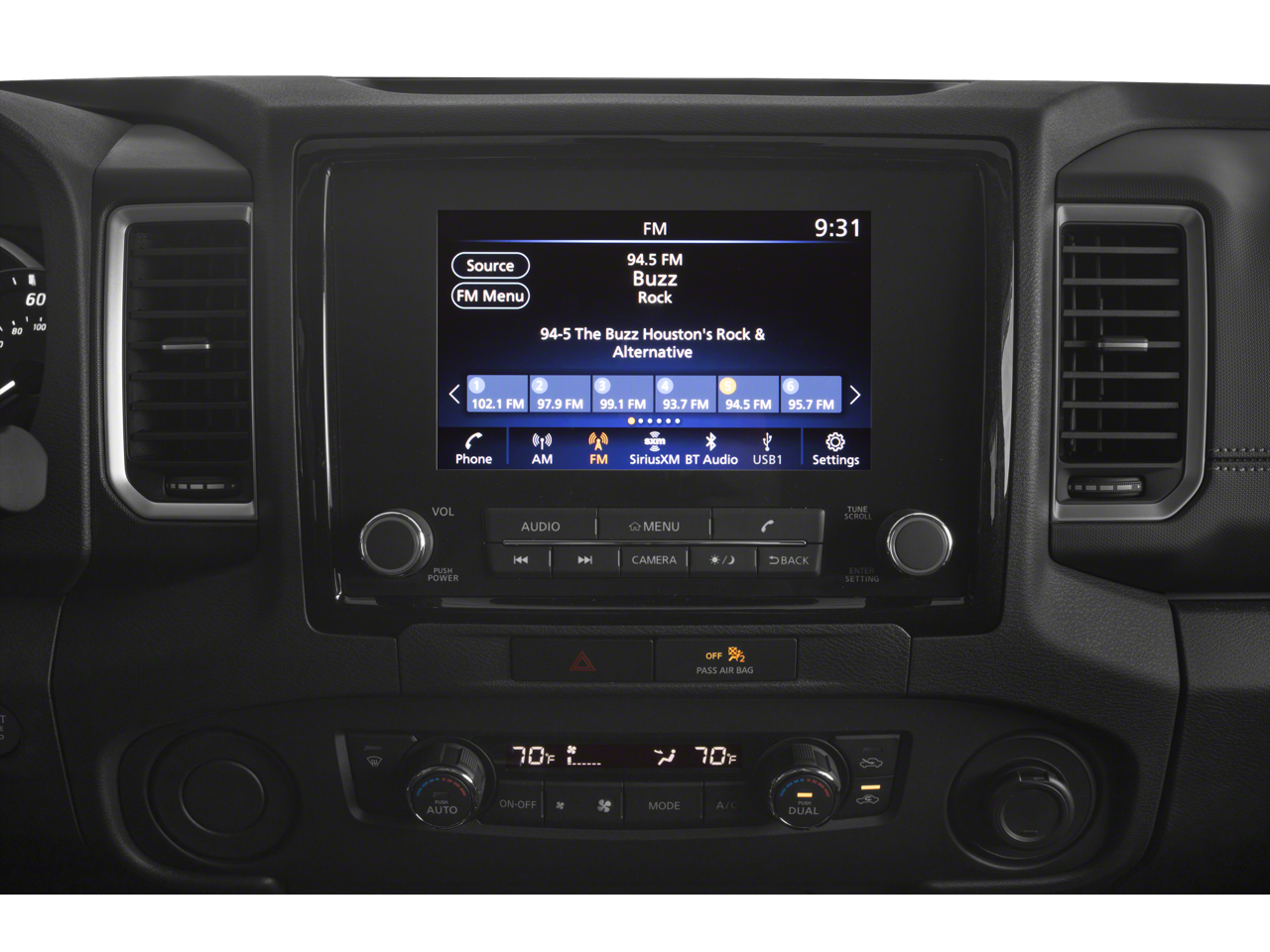 SV Convenience Package (17 Alloy Wheels, Front Halogen Fog Lights, Heated Leather Steering Wheel, HVAC - Dual-Zone Front Auto A/C, I-Key w/Request Switches on O/S Handles, Illuminated Locking Glove Box, Leather Shift Lever, Overhead Console Storage (Sunglass Holder), Sliding Rear Window, and Tow/Haul Mode Switch), Tow Package (T11), Nissan Certified Certified, 16 Alloy Wheels, 3.692 Axle Ratio, 4-Wheel Disc Brakes, 6 Speakers, ABS brakes, Air Conditioning, Alloy wheels, AM/FM radio: SiriusXM, Anti-whiplash front head restraints, Apple CarPlay/Android Auto, Brake assist, Bumpers: body-color, Carpeted Floor Mats, Delay-off headlights, Driver door bin, Driver vanity mirror, Dual front impact airbags, Dual front side impact airbags, Electronic Stability Control, Electronic Tailgate Lock, Fender Premium Audio System w/10 Speakers, Front anti-roll bar, Front Bucket Seats, Front Center Armrest, Front reading lights, Front wheel independent suspension, Fully automatic headlights, Illuminated entry, Knee airbag, Low tire pressure warning, Occupant sensing airbag, Overhead airbag, Panic alarm, Passenger door bin, Passenger vanity mirror, Power door mirrors, Power driver seat, Power steering, Power windows, Premium Cloth Seat Trim, Radio data system, Radio: SXM/AM/FM/AUX/USB Audio System, Rear anti-roll bar, Rear seat center armrest, Rear side impact airbag, Rear step bumper, Remote keyless entry, Security system, Speed control, Speed-sensing steering, Splash Guards, Split folding rear seat, Steering wheel mounted audio controls, Tachometer, Tilt steering wheel, Traction control, Trip computer, Variably intermittent wipers, and Voltmeter.