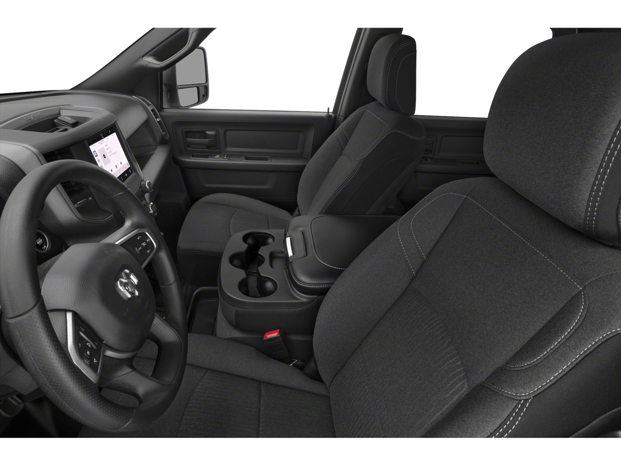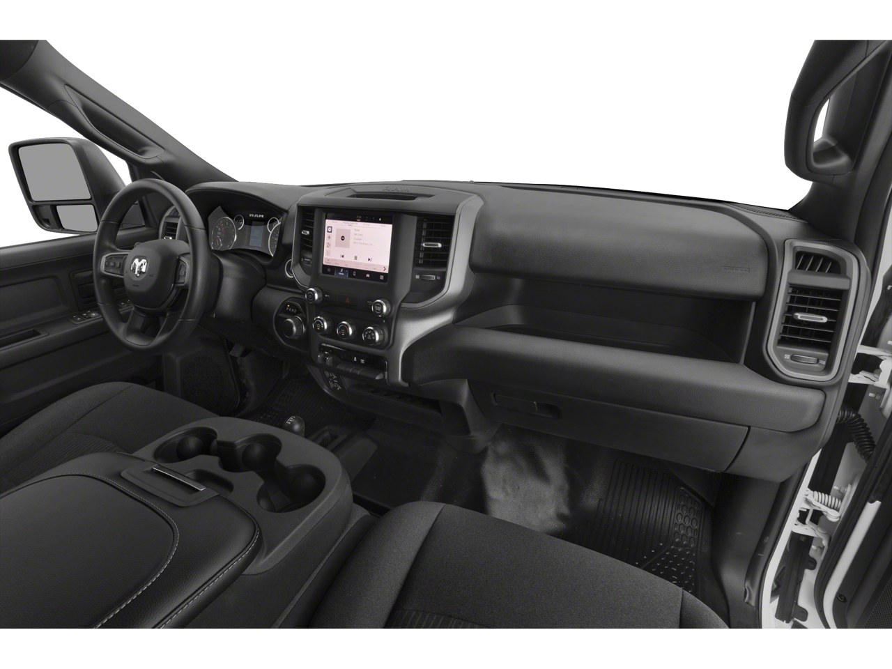 Chrome Appearance Group (Bright Front Bumper, Bright Rear Bumper, Center Hub, Chrome Grille Surround, Chrome Headlamp Bezels, Matte Black Mesh Grille w/Chrome, and Wheels: 18 x 8.0 Steel Chrome Clad), Protection Group (Tow Hooks), Quick Order Package 2GA Tradesman, Tradesman Level 2 Equipment Group (2 Way Rear Headrest Seat, 4 Way Front Headrests, 40/20/40 Split Bench Seat, Black Exterior Mirrors, Cloth 40/20/40 Bench Seat, Exterior Mirrors Courtesy Lamps, Exterior Mirrors w/Heating Element, Exterior Mirrors w/Supplemental Signals, For More Info, Call 800-643-2112, Front Armrest w/Cupholders, Manual Adjust 4-Way Driver Seat, Manual Adjust 4-Way Front Passenger Seat, Manual Folding Exterior Mirrors, Manual Telescoping Mirrors, Mirror Running Lights, Power Adjust Mirrors, Power Adjustable Convex Aux Mirrors, Power Heated Folding Telescope Mirrors, Rear Folding Seat, Rear Power Sliding Window, Rear Window Defroster, Remote USB Port - Charge Only, SiriusXM Radio Service, SiriusXM Satellite Radio, and Storage Tray), 17 x 7.5 Steel Styled Wheels, 3.73 Axle Ratio, 4-Wheel Disc Brakes, 6 Speakers, ABS brakes, Active Noise Control System, Air Conditioning, AM/FM radio, Anti-Spin Differential Rear Axle, Auto Power-Folding Mirrors, Brake assist, Carpet Floor Covering, Clearance Lamps, Compass, Delay-off headlights, Driver door bin, Dual front impact airbags, Dual front side impact airbags, Electronic Stability Control, Electronically Controlled Throttle, Emergency communication system: SiriusXM Guardian, Forward & Reverse Utility Lights, Front & Rear Floor Mats, Front anti-roll bar, Front Center Armrest w/Storage, Front License Plate Bracket, Front reading lights, Fully automatic headlights, Global Telematics Box Module (TBM), GPS Antenna Input, Heavy Duty Vinyl 40/20/40 Split Bench Seat, Illuminated entry, Integrated Voice Command w/Bluetooth®, Low tire pressure warning, MOPAR Front & Rear Rubber Floor Mats, Occupant sensing airbag, Outside temperature display, Overhead airbag, Overhead console, ParkView Rear Back-Up Camera, Passenger door bin, Passenger vanity mirror, Power Heated Fold Telescope Mirrors, Power steering, Power Telescoping Mirrors, Power windows, Radio data system, Radio: Uconnect 3 w/5 Display, Rear anti-roll bar, Rear step bumper, Speed control, Tachometer, T