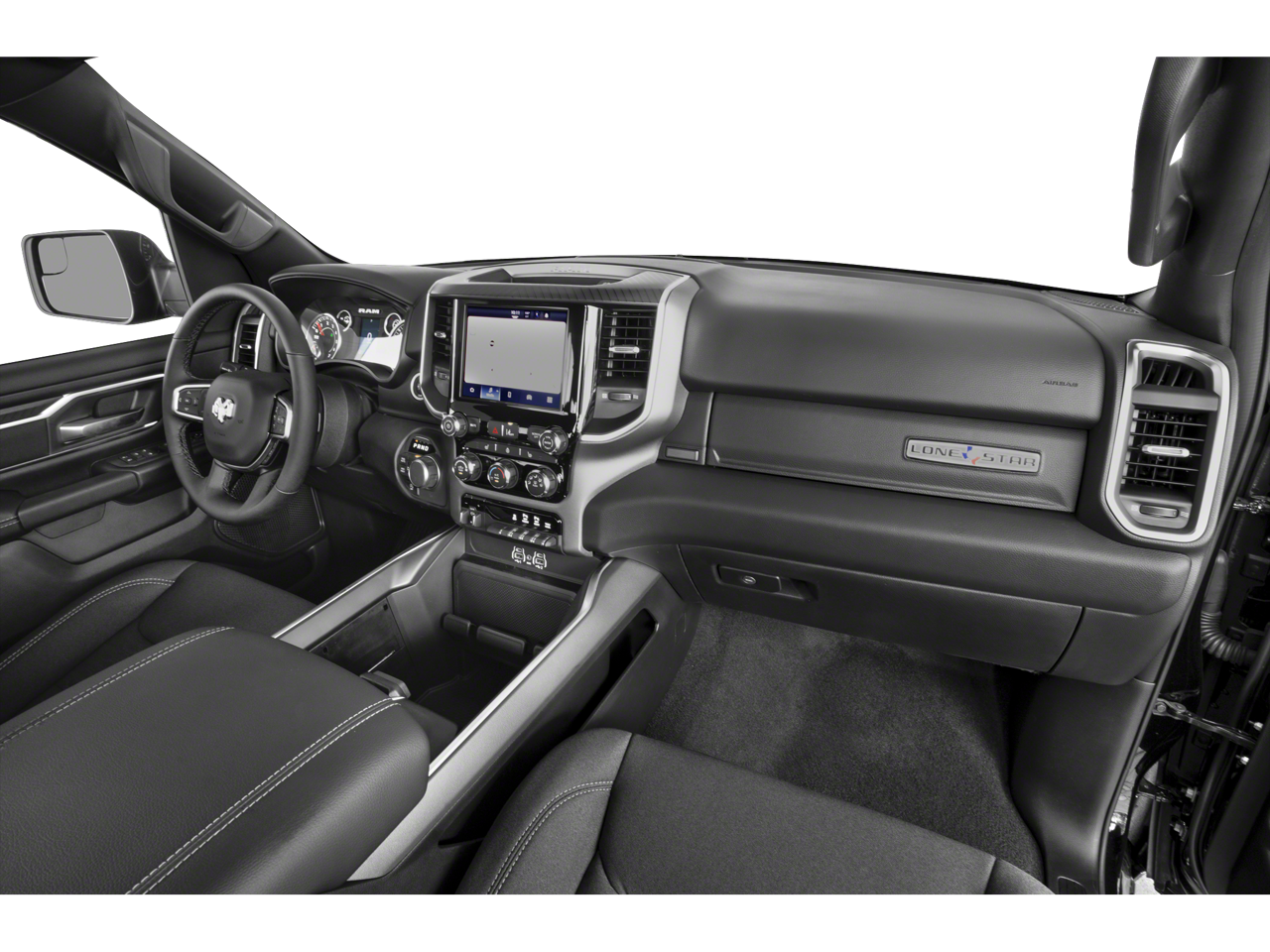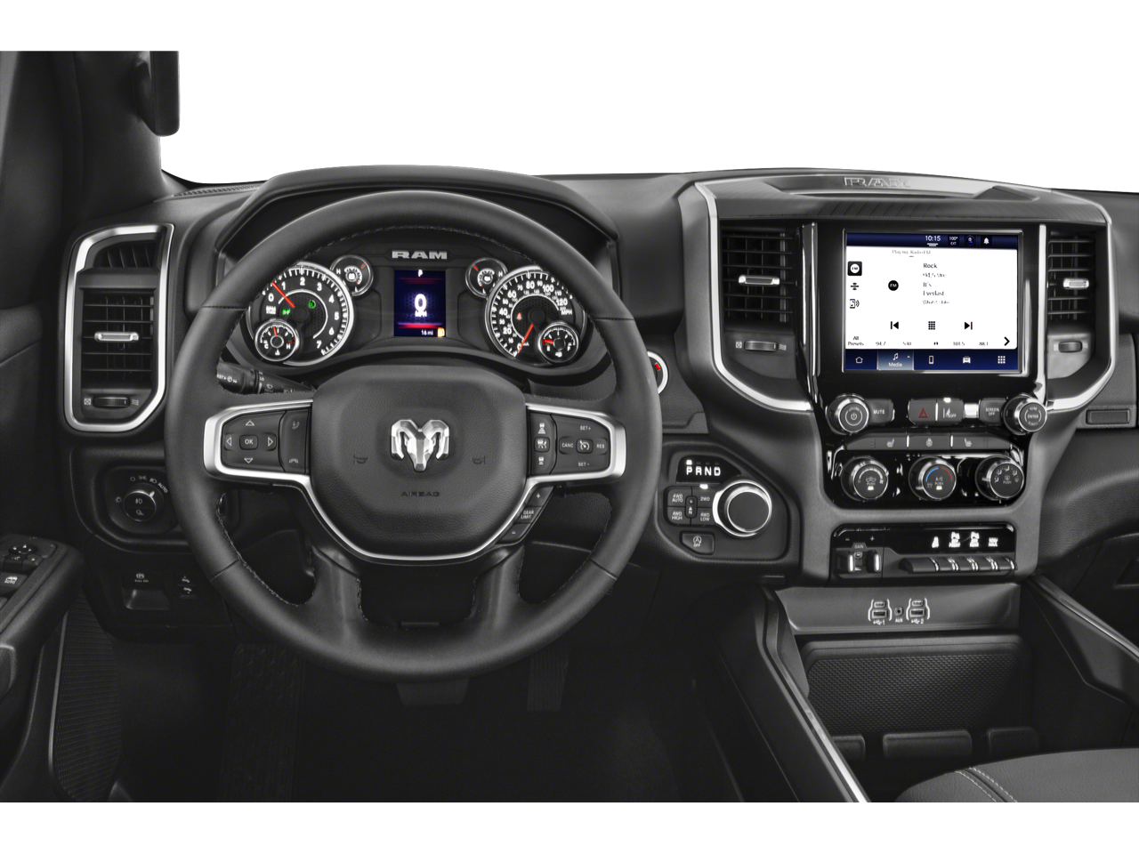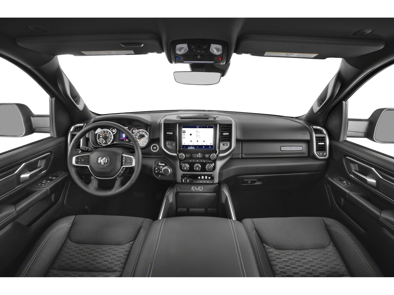Bed Utility Group (Exterior 115V AC Outlet, MOPAR 4 Adjustable Cargo Tie-Down Hooks, MOPAR Spray In Bedliner, and Pick-Up Box Lighting), Big Horn Level 2 Equipment Group (115V Auxiliary Power Outlet, 115V Auxiliary Rear Power Outlet, 12 Touchscreen Display, 2nd Row In Floor Storage Bins, 400W Inverter, 4G LTE Wi-Fi Hot Spot, 9 Amplified Speakers w/Subwoofer, Air Conditioning ATC w/Dual Zone Control, Apple CarPlay, Auto Power-Folding Mirrors, Auto-Dimming Exterior Driver Mirror, Auto-Dimming Rear-View Mirror, Black Exterior Mirrors, Black Premium Power Mirrors, Cluster 7.0 TFT Color Display, Configurable Drive Mode, Connected Travel & Traffic Services, Connectivity - US/Canada, Convex Wide-Angle Exterior Mirror Insert, Exterior Mirrors Courtesy Lamps, Exterior Mirrors w/Heating Element, Exterior Mirrors w/Supplemental Signals, Glove Box Lamp, Google Android Auto, GPS Antenna Input, GPS Navigation, HD Radio, Heated Front Seats, Heated Steering Wheel, Integrated Voice Command w/Bluetooth®, Leather Wrapped Steering Wheel, LED Dome Lamp w/On/Off Switch, LED Footwell Lighting, Media Hub w/2 Charge Only USBs, Overhead LED Lamps, Power 2-Way Driver Lumbar Adjust, Power Adjust 8-Way Driver Seat, Power Adjustable Pedals, Premium Overhead Console, Radio: Uconnect 5 Nav w/12.0 Display, Rear Power Sliding Window, Rear Window Defroster, Remote Tailgate Release, Security Alarm, SiriusXM w/360L, Steering Wheel Mounted Audio Controls, Sun Visors w/Illuminated Vanity Mirrors, Universal Garage Door Opener, and USB Host Flip), Quick Order Package 21Z Big Horn, Sport Appearance Package (3 Rear Seat Head Restraints, 4 Way Front Headrests, Black Interior Accents, Body Color Door Handles, Body Color Front Bumper, Body Color Rear Bumper w/Step Pads, Body Color Tailgate Handle, Bucket Seats, Deluxe Cloth Bucket Seats, Front Seat Back Map Pockets, Full Length Floor Console, Grille Surround 1 Body Color Texture 1 Black, Manual Adjust 4-Way Front Passenger Seat, RAM Grille Badge - Chrome, Rear 60/40 Folding Seat, and Rear Center Armrest), 4-Wheel Disc Brakes, 6 Speakers, ABS brakes, Air Conditioning, Alloy wheels, AM/FM radio, Apple CarPlay/Android Auto, Auto High-beam Headlights, Brake assist, Bumpers: chrome, Cloth Be